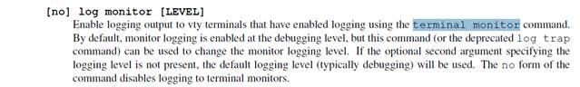 2) `terminal monitor` is currently only meant for when you telnet into a particular daemon. There is no good way to have asynchronous logging data between all the daemons be sent to the vtysh process for what you are trying to do. I would suggest using a `log file XXX` and in another window tail'ing that file. I have also been known to turn on debugging, watching the log file via a `tail -f XXXX &` and then invoking vtysh to see output as I do work.